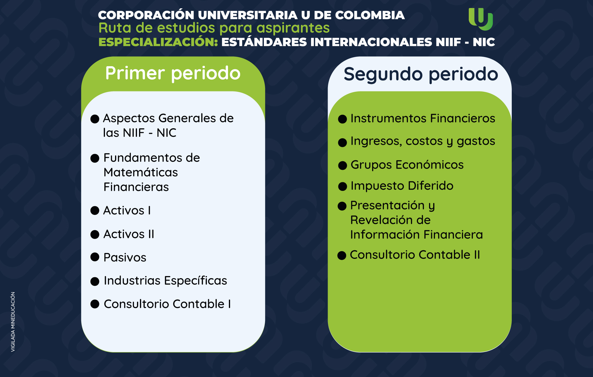 La Corporación Universitaria U DE COLOMBIA te conduce a este logro en un año con la Especialización en Estándares Internacionales NIIF – NIC.